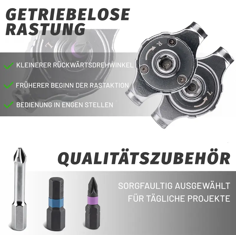 - Das Ratschendesign reduziert den Kraftaufwand im Vergleich zu herkommlichen Schraubendrehern um 80% und bleibt auch bei langerem Gebrauch komfortabel. Einfaches Umschalten zwischen Drehung im und gegen den Uhrzeigersinn zum Anziehen oder Losen von Schrauben- Sie müssen Ihr Handgelenk nicht verdrehen.