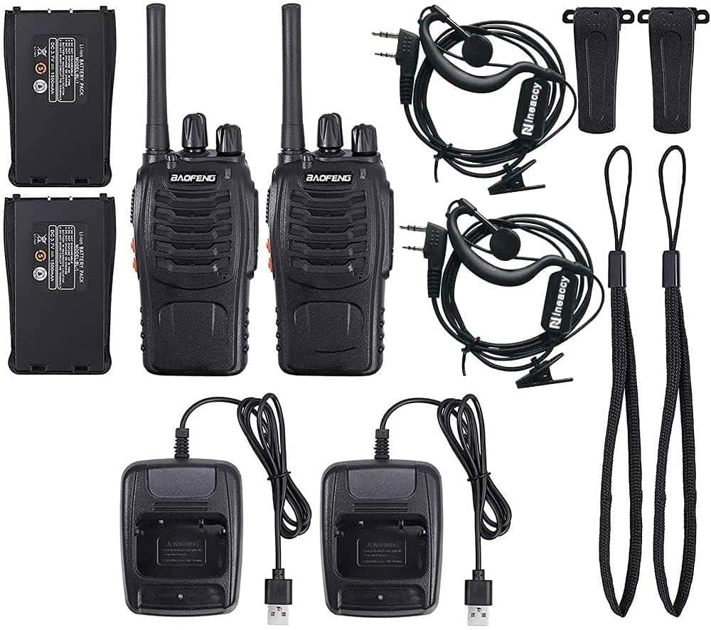 - High-quality built-in speakers and microphones on radios provide a loud and clear sound. Unique noise reduction function, even in a noisy environment can maintain clear voice. Each walky talky comes with a single-ear headset (k-type headphone plug with 3.5mm and 2.5mm plugs); When the earpiece is plugged in, all the sound is transferred to the headset, and you can talk directly through the headset microphone.