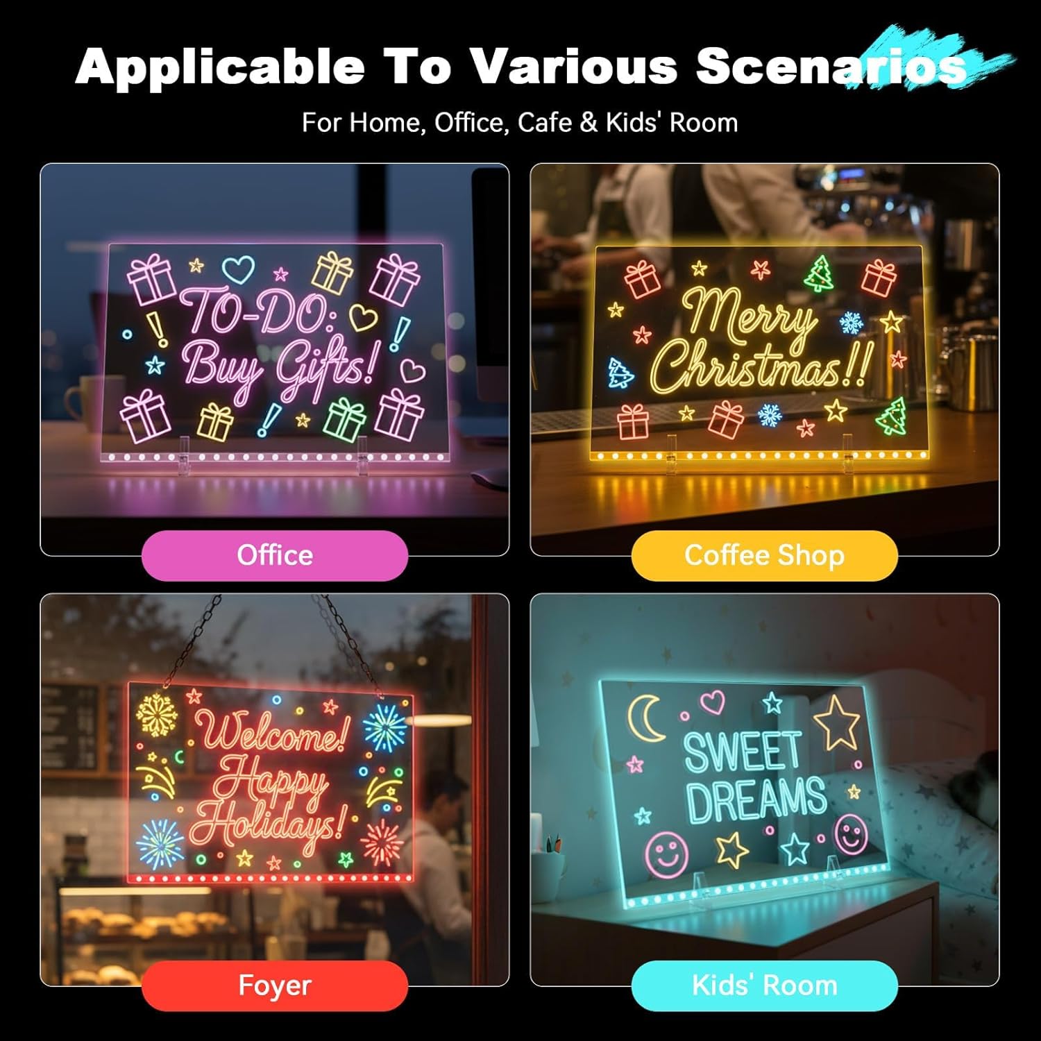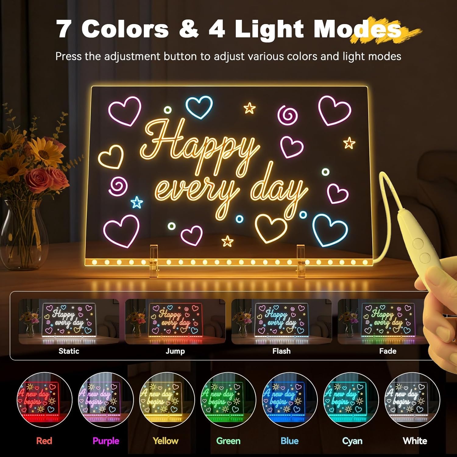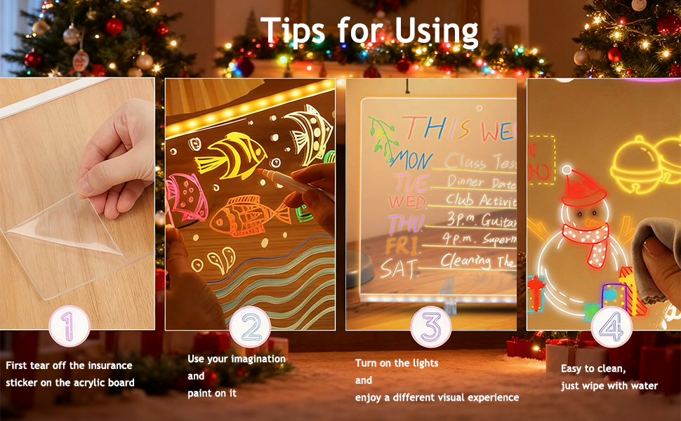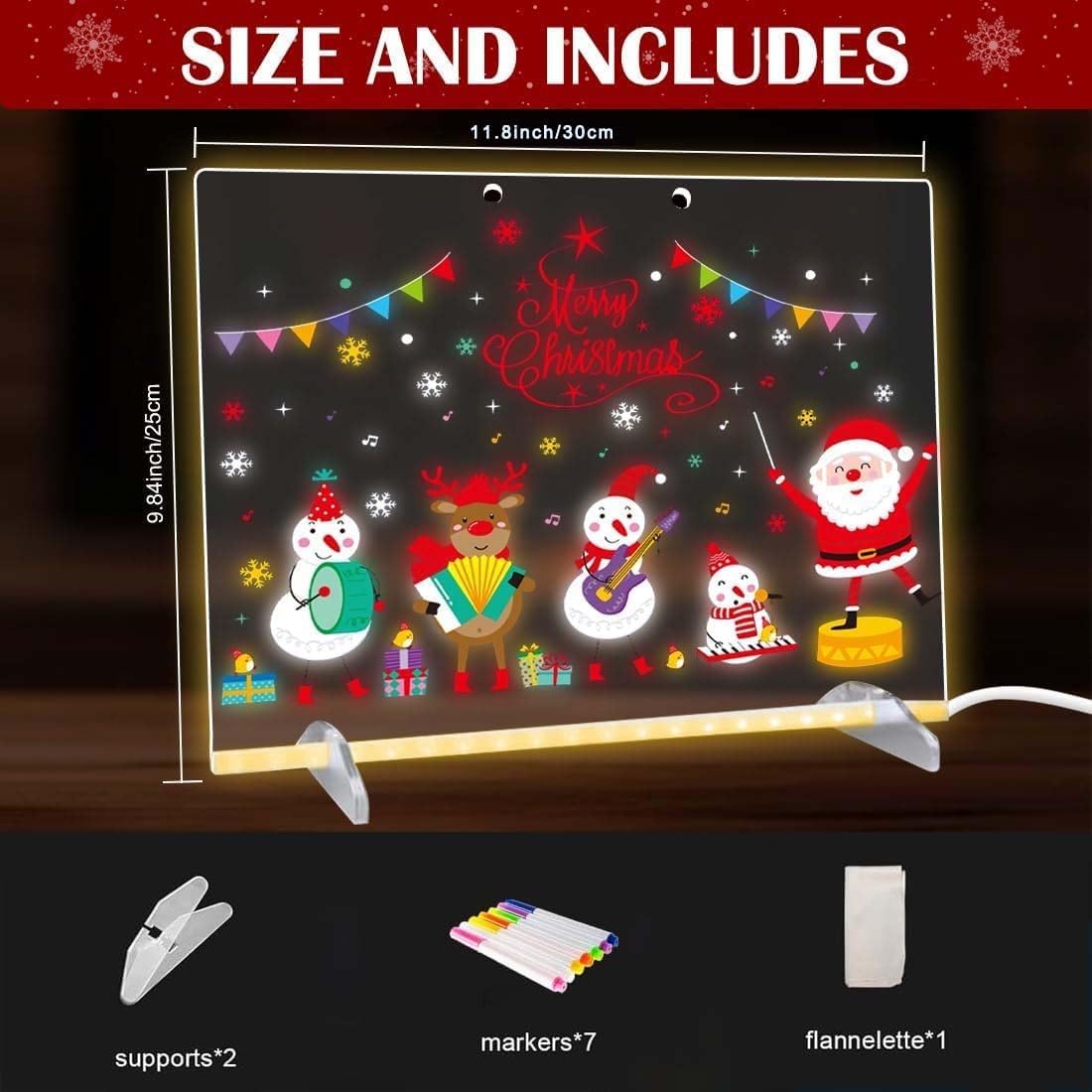 - 【2025 Upgraded LED Drawing Board】The led noteboard with colors is made of premium water-soluble material, the surface is designed to be scratch-resistant so that it won’t scratch when wiping. Perfect 11.8“*10” size, provides plenty of space for creativity. Built-in 20 holes, adjustable buttons can be used to control the light size or blinking frequency.
