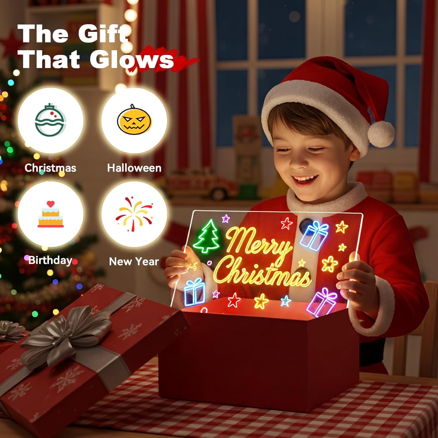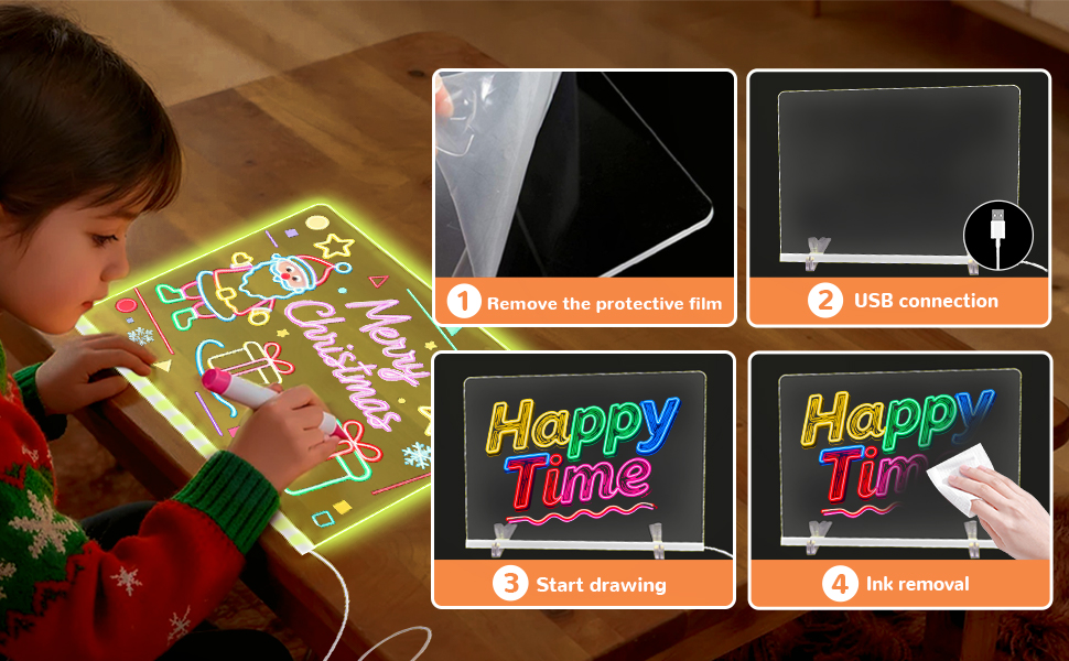 - 【Illuminate Creativity with Dynamic Lighting】This light-up drawing board for kids features 7 vibrant RGB lighting options and 4 dynamic modes, including static, jump, flashing, and fading effects, making every drawing session an exciting and colorful adventure. Kids can choose their favorite color or cycle through the entire spectrum to bring their artwork to life.
