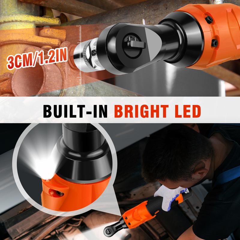 ★Powerful Cordless Ratchet Wrench: 30 ft-lbs large torque system, 230RPM speed, strong power and effective protection against machine damage caused by excessive motor temperature. 3/8″ Square Head Ratchet Wrench is perfect for any automotive maintenance, construction projects, wedding, home repair work, bicycle breakdown service, scaffolding installation, truss structure and more other small jobs.