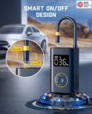 - Safe and Energy Conserving: no more fussing with hose installations on the X9 Pro! All you need to do is pull out the yellow end of the hose to activate it and simply push it back into the inflator’s body to turn it off; What’s more, if left unused for 3 mins, it will automatically shut down, preventing accidental activations, and ensuring a safer user experience