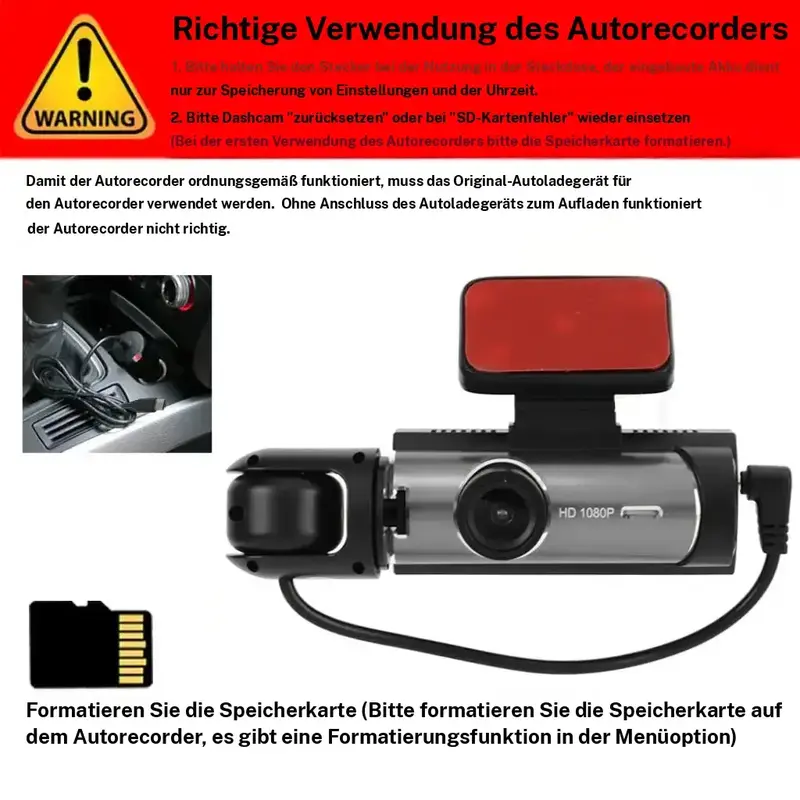 - [IR-Nachtsicht]: Ausgestattet mit fortschrittlicher Infrarot-Nachtsicht sorgt diese Dashcam für klare Aufnahmen bei schlechten Lichtverhaltnissen und erhoht die Sicherheit bei Nachtfahrten.