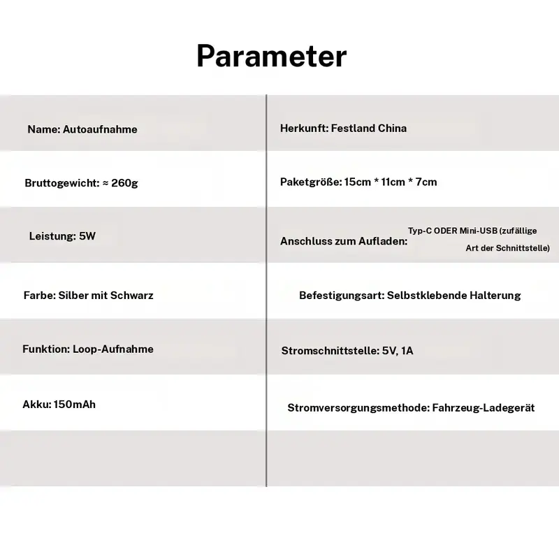 - [Loop-Aufnahme]: Bei der Loop-Aufnahme überschreibt die Dashcam automatisch die altesten Dateien,um neue Videos zu speichern und eine kontinuierliche Aufnahme zu gewahrleisten,ohne dass der Speicherplatz manuell geloscht werden muss.
