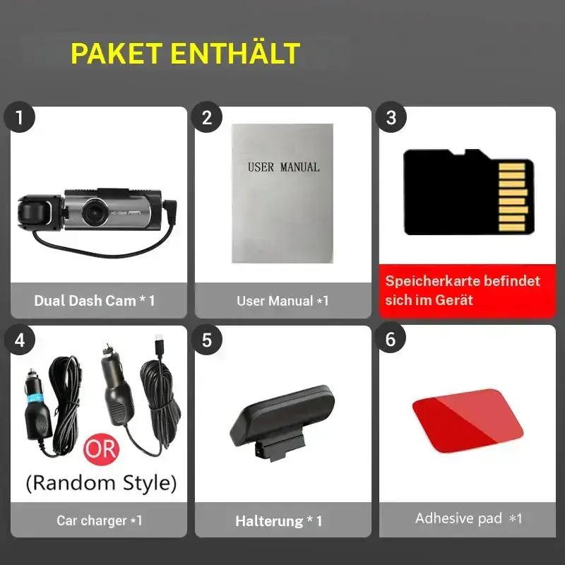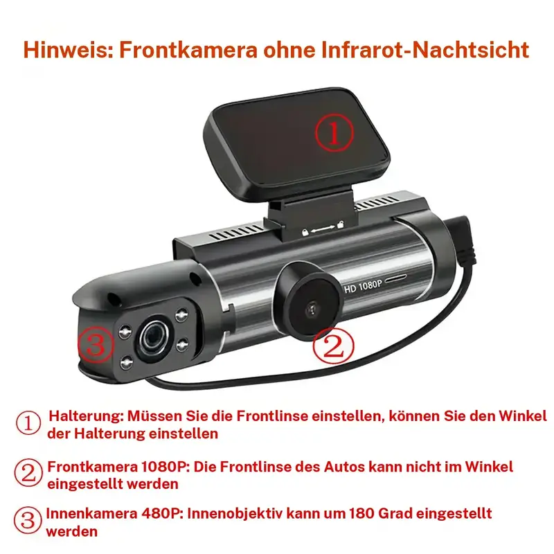 - [108oP Dual Camera]: Mit einer Auflosung von 1080P mit Dual-Kamera-Setup erfasst es sowohl die StraBe vor als auch den Innenraum mit klarer Klarheit,ideal für Unfallbeweise.