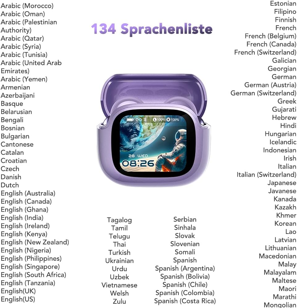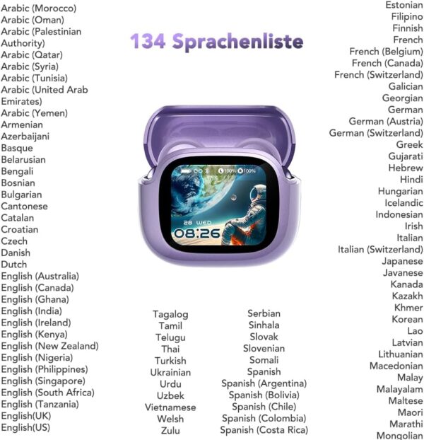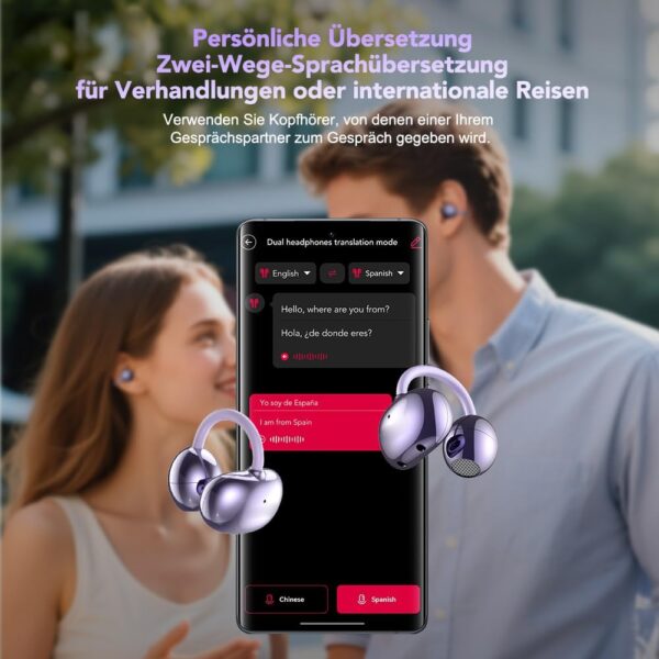 - 【Cuffie con Traduttore AI 3 in 1】 Combina traduzione in tempo reale, chiamate di alta qualità e intrattenimento musicale in un unico dispositivo elegante. Cuffie traduttore con IA che supportano 134 lingue – tra cui inglese, spagnolo, mandarino, francese, tedesco, arabo e italiano – con una precisione del 98% e un ritardo di traduzione inferiore a 0,5 secondi. Queste cuffie per la traduzione in tempo reale sono ideali per riunioni internazionali, viaggi, apprendimento linguistico o uso quotidiano.