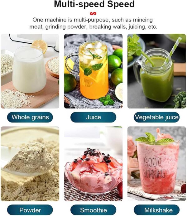 • 【Puissance puissante, déchiquetage efficace des parois】Dotée d’un moteur puissant de 5000w et d’une conception à quatre lames en acier inoxydable, cette déchiqueteuse 2 – en – 1 est capable de gérer facilement une variété d’ingrédients, qu’il s’agisse de glaçons durs ou de fruits végétaux riches en fibres, pour créer rapidement des smoothies délicats ou des soupes épaisses. Idéal pour écraser des fruits surgelés, des glaçons, des shakes, des cocktails, des sauces, etc.