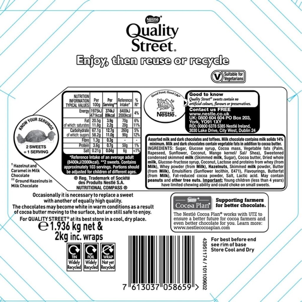 Nestlé Quality Street Tin – 2KG of Individually Wrapped Chocolates Sweet Dessert