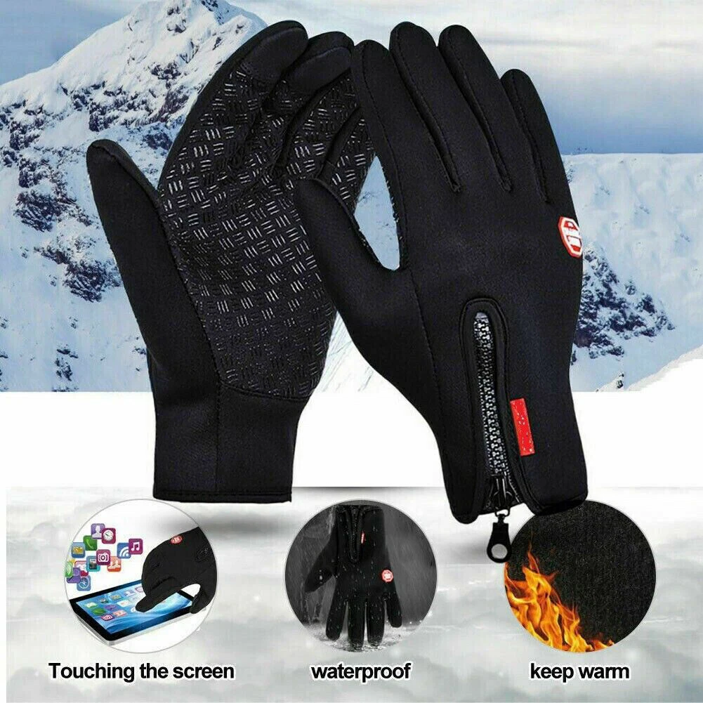 Thick warm antiskid touch screen gloves, the gloves keep your hands warm enough to protect your hands from cold days. High sensitivity touch screen, you can touch screen of your smart phone or tablet and no need for taking off gloves in the cold weather. Anti-splashing water and windproof, our winter gloves are made of the fabrics slightly windproof, warmth and breathable characteristics and sweat absorbent material. Anti-splashing water design (Not Really Waterproof), it is slightly waterproof, can not used on underwater or heavy rain days. Anti-slip design on the palm patches and fingers for a better grip to prevent your hands skid when you driving or cycling or hold something else, abrasion resistant and anti-skid, offering better use experience for work. On the back of the gloves has a zipper, so you can adjust the sizes to fit your hands comfortably. Anti-lost buckle design, prevent the loss, convenient and practical. Perfect for cold winter casual, riding, driver, hiking, running, cycling, snow, landscaping, DIY projects, cross-Country skiing, snowmobile and other winter outdoor activities.