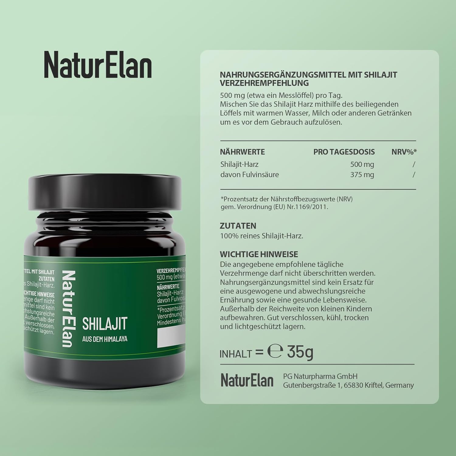 • Knowledge from traditional Ayurveda: Shilajit is an important component of traditional Ayurvedic medicine and contains a variety of essential amino acids and minerals, humic acid and fulvic acid, and as well as 85 other trace elements and nutrients that provide the body with energy.