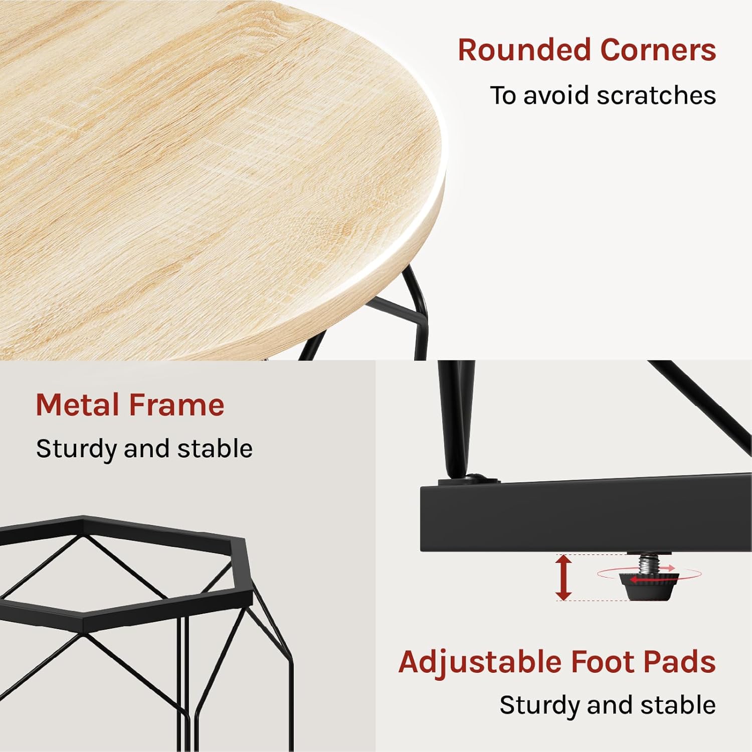 - [Stable and Strong] The mix of quality particleboard and sturdy steel frame makes this side table set stable so that it won’t wobble every time you pick up your coffee cup. Each small table can support up to 44 lb