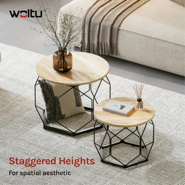 - [Compact Size] The large coffee table measures 19.7”Dia. x 15.7”H and the small coffee table measures 15.7”Dia. x 14.2”H; the compact size suitable for small spaces allows you to find the right place for afternoon tea, decorations, or a laptop for work