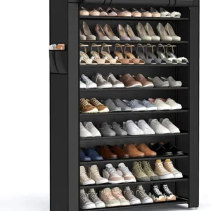 SONGMICS Schuhregal, Schuhschrank, Schuhaufbewahrung, mit staubdichtem Überzug, Schuh-Organizer, für High Heels, Sportschuhe, Metallgestell