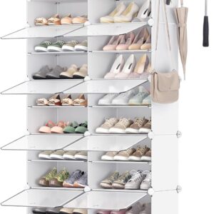 SONGMICS Schuhregal, Schuhschrank, 30 x 40 x 30 cm pro Fach, schmal, mit Türen, Stahlrahmen, Kunststoff, für Flur, Schlafzimmer, Eingangsbereich