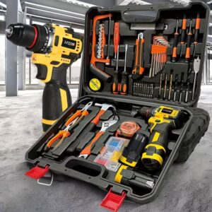 SPZTJK Kabelloser Schlagbohrer & Schraubendreher-Set – Impact-Bohrer, Wiederaufladbar, PE-Material, für Heim-DIY-Projekte, Bau, Baugeräte, Kabelloser Schlag-Schraubendreher