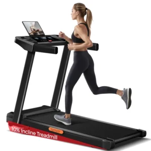 UMAY-schräges Laufband mit Griff für Zuhause und Büro, Walking Pad, 300 Pfund Gewichtskapazität, 3,0 PS leises faltbares Laufband, drei LED-Bildschirme