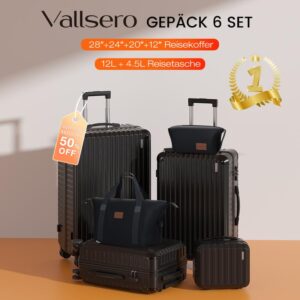 VALLSERO Reisekoffer Stylishes & Praktisches 6-teiliges Gepäckset (28”/24”/20”koffer,12” kosmetikkoffer,Reisetasche,Waschbeutel)- Perfekt für Reisen