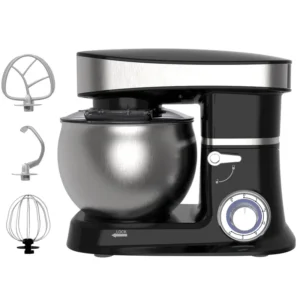 Küchenmaschine 1500W mit 6L Edelstahl-Schüssel – Knetmaschine mit 6 Geschwindigkeiten, Spritzschutz mit Einfüllhilfe, 3-teiliges Rührsystem (Knethaken, Flachrührer, Schneebesen), Anti-Rutsch-Füße, leise & platzsparend