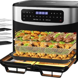 XXL BBQ Heißluftfritteuse 12L Dual Zone – 2600W Airfryer mit Sichtfenster | Doppelkammer mit herausnehmbarer Trennwand & Körben, LED-Touch, 10 Programmen, Indoor-BBQ, gesund & fettarm, automatische Abschaltung, Schwarz