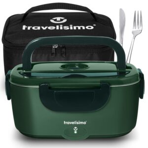 TRAVELISIMO Elektrische Lunchbox für die Arbeit, 80 W, 1,5 l, elektrische Lunchbox, 3-in-1, Thermo-Lunchbox, 12 V/24 V/220 V, Lunchboxen für die Arbeit im Auto und LKW, Edelstahl, Lunchbox für die Arbeit