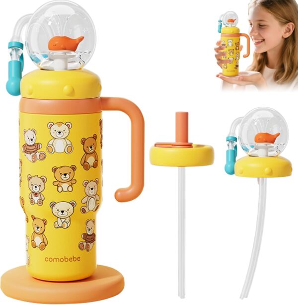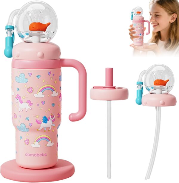 - 🐳🥤【 Unique Gifts Ideal 】 Committed to creating kid’s cups that is not only practical, but also allows kids to feel the joy and warmth! Available in multiple attractive colors and vivid pattern that, spill proof water bottle for kids will catch your kid’s attention, making drinking water more fun and each sip becomes both a delight and a statement! This cute kids tumblers will be ideal gift for your kids for birthday, kids day, christmas, new year, back to