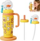- 🐳🥤【 Cute Whale Fountain Tumbler with Handle 】 This drinking cup features a cute whale squirt design that utilizes turbocharged negative pressure and a valve to suck in and squirt out water. It makes drinking water fun and allows kids to fall in love with drinking water. 🔥🔥 2025 new 710ml/24.01oz or 350ml 11.84oz cute whale spray water cup with adjustable strap, two straws and a straw brush
