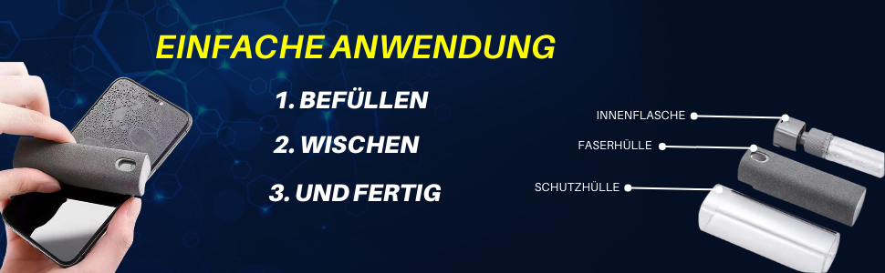 - Universale Anwendbarkeit: Das Spray und das Mikrofasertuch können auf eine Vielzahl von Geräten mit Bildschirmen angewendet werden, einschließlich Auto-Displays, Smartphones, TVs und Tablets.