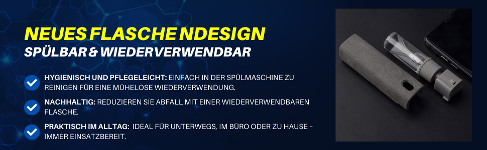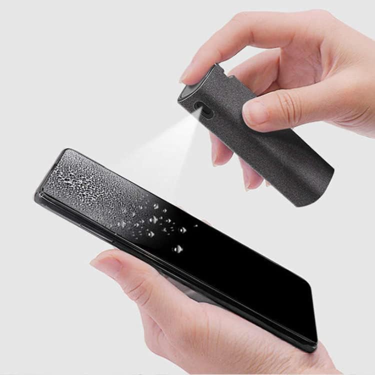 - In der Hülle integriertes Mikrofasertuch zur Säuberung des Bildschirms nach der Anwendung des Sprays.