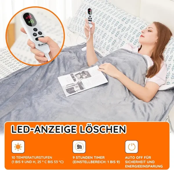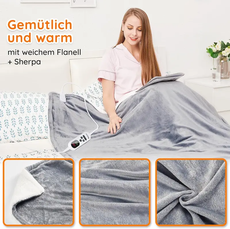- Die Warme hat Sie an kalten Tagen vollstandig bedeckt:Die elektrisch beheizte Decke von Mia & Coco verfügt über 10 Temperatureinstellungen und 9 Auto-Off- Timer-Stufen, die mit Flanell & Sherpa hergestellt wurden, damit Sie einen angenehmen Winter genießen konnen. Weich und komfortabel:Hergestellt aus Flanell und Sherpa, um eine hervorragende Warmespeicherleistung und ein hautfreundliches Erlebnis zu bieten. Kein kaltes Gefühl beim Beruhren, selbst wenn die Heizung noch nicht gestartet wurde. 10 Temperaturstufen,9-Stunden-Auto-Off-Timer für Sicherheit und Energieeinsparung :Uber die Steuerung erhalten Sie 10 Optionen für die Zieltemperatur von 1, 2 bis 9 und H (25° C bis 53 C).Mit dem Timer konnen Sie die Stunden für das Ausschalten einstellen. Sicher mit ETL-Zertifikat zu verwenden:Diese Heizkissen bestehen aus hochwertigem Material und sind von hoher Qualitat. Sie konnen sie mit Sicherheit verwenden, wenn Sie sie gemaß Benutzerhandbuch verwenden. Maschinenwaschbar: Sie konnen das Kabel abnehmen und diese Decke von Hand oder maschinell waschen, indem Sie der Anleitung im Benutzerhandbuch folgen.