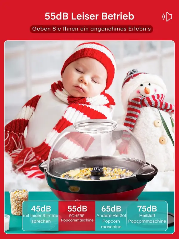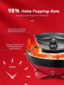 ●Groβes Fassungsvermogen von 5,5 Litern:GenieBen Sie bis zu 5,5 L Popcorn im Kinostil mit der FOHERE Popcornmaschine. Sie konnen Butter, Zucker, Salz, Kase und andere Gewurze direkt auf die Poppplatte geben, um verschiedene Popcorns zu probieren, sich von verpacktem Popcorn mit Zusatzstoffen zu verabschieden und jederzeit frisches Popcorn mit Ihrer GroBfamilie zU genieBen. 4min schnelles Popping: FOHERE Popcorn Popper mit verdickter und antihaftbeschichteter Popping-Platte und starkem Heizrohr, hilft beim schnellen Aufheizen und verlangert die Lebensdauer. Der motorisierte Rührer rührt das Popcorn um, erhitzt es gleichmaBig, um eine bessere Pop-Leistung zu erzielen und eine Explosionsrate von 98% zu erreichen. Für knuspriges und frisches Popcorn