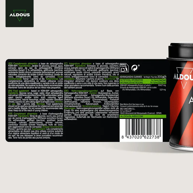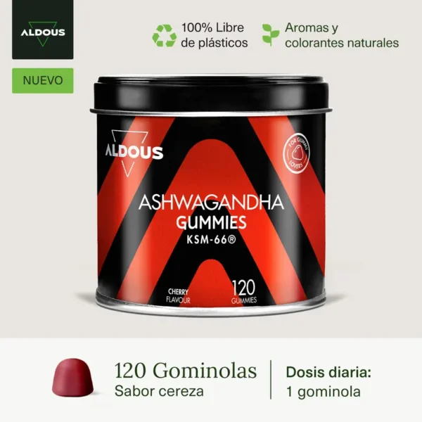 - 💫 GOMINOLAS ASHWAGANDHA KSM-66 ESPECTRO COMPLETO – Las ashwagandha gominolas Aldous promueven el bienestar físico y mental. Cada gominola tiene sabor natural a cereza y al sabor característico de la ashwagandha. Cada gominola contiene 104,17mg de extracto de Ashwagandha ksm-66 de la india de calidad premium. El extracto KSM-66 tiene una concentración mas alta que los demás extractos de ashwagandha polvo sin ksm66 que añaden las hojas de la planta al extracto y son de más baja concentración.