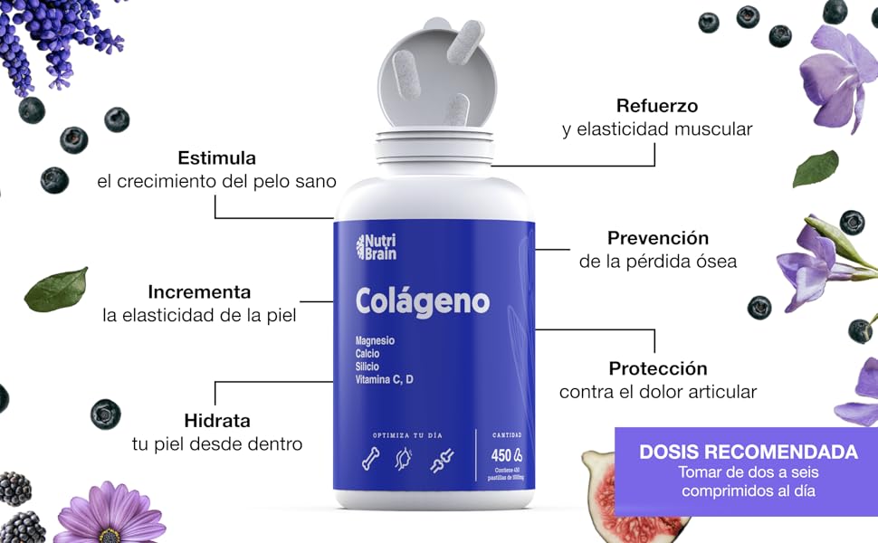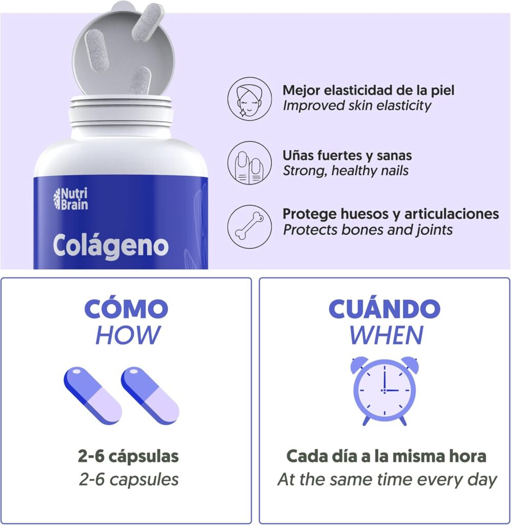 - 🌿 𝗣𝗥𝗢𝗧𝗘𝗚𝗘 𝗗𝗘 𝗙𝗢𝗥𝗠𝗔 𝗡𝗔𝗧𝗨𝗥𝗔𝗟: este suplemento protege y refuerza la piel, el pelo, las uñas, los huesos, los músculos y las articulaciones con este colágeno hidrolizado de NutriBrain de alta calidad elaborado a partir de la mejor combinación de vitaminas minerales