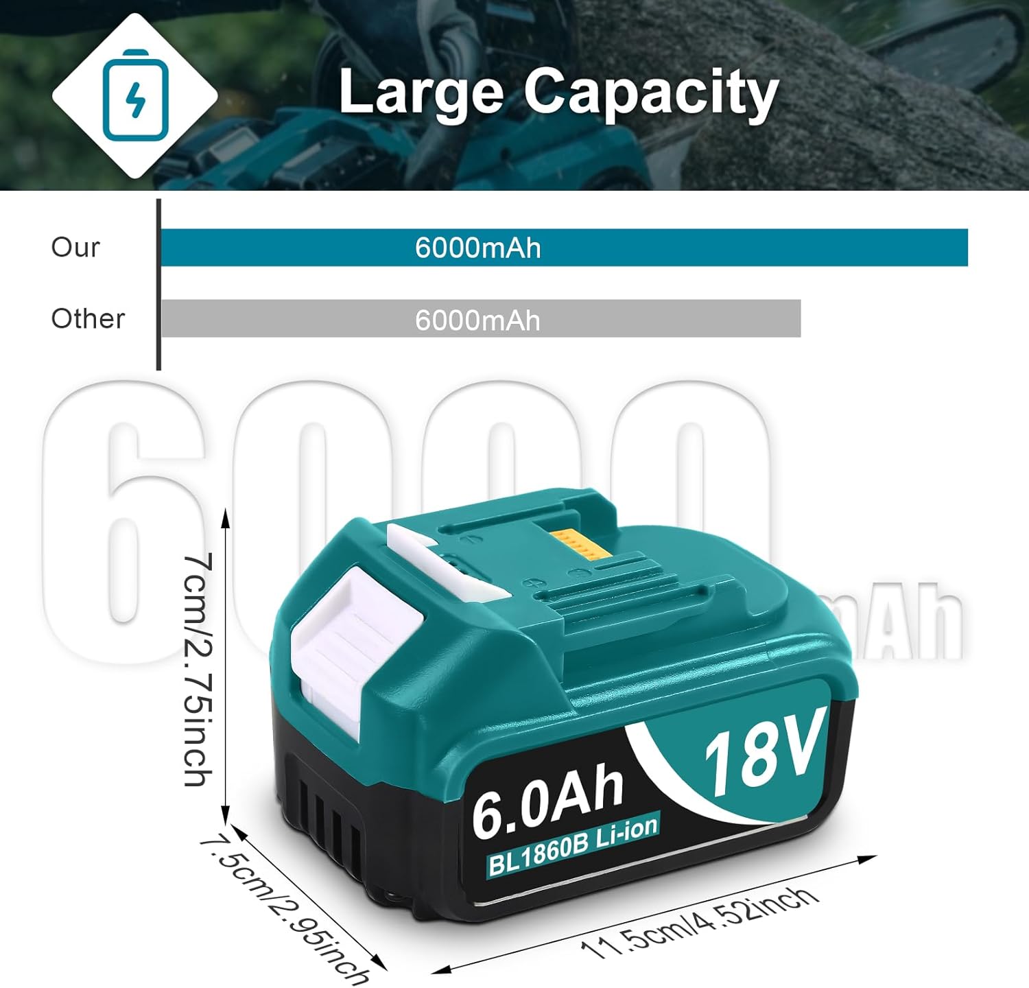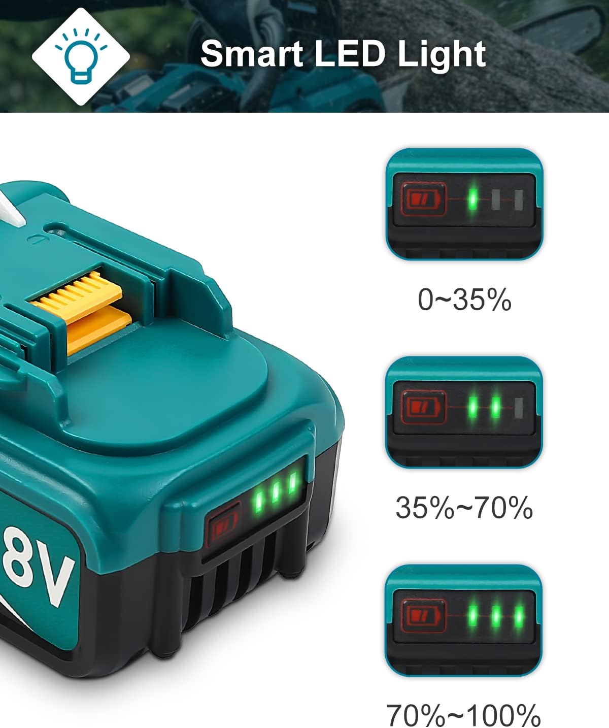 - Intelligent display and anti-ageing contacts: Aaiwtd replacement battery for Makita 18 V. With the built-in LED display, you can monitor the performance of the battery. So you always have enough time to charge the Makita 18V replacement battery before it runs out. We test the contacts on Makita tools and chargers before sending them to you.