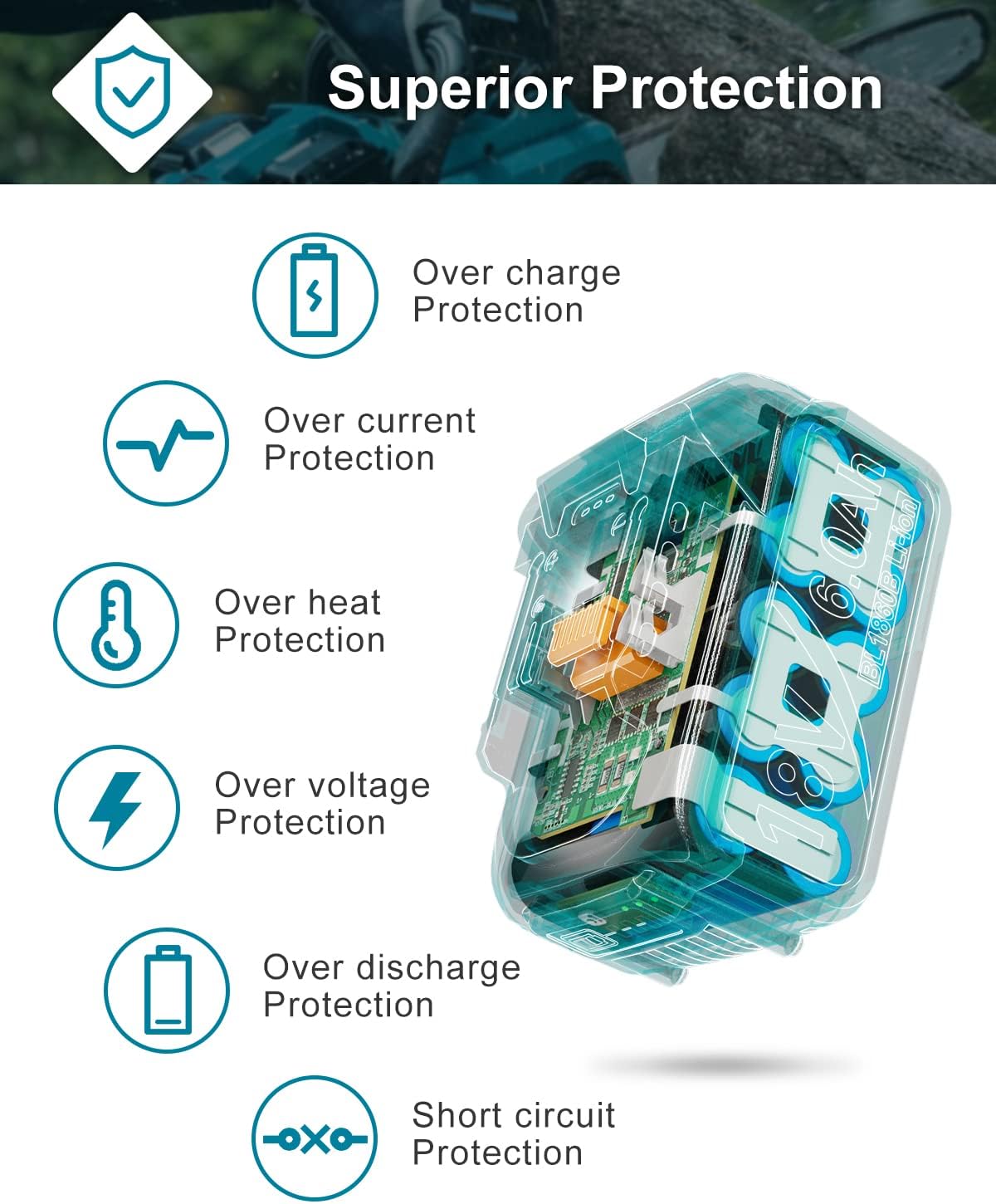 - We improve the battery with the heart: the package contains two 5.5 Ah batteries. We insert a BMS security card into the core of the battery. Compared to other aftermarket batteries, it works smarter and safer with your 18V Makita tools and charger. The BMS card monitors the battery to prevent overcharging and excessive discharge. So the Aoasur replacement battery for Makita does not discharge even after 2 years of use.