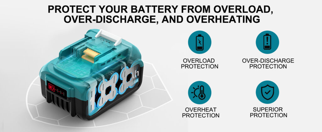 - We improve the battery with the heart: the package contains two 5.5 Ah batteries. We insert a BMS security card into the core of the battery. Compared to other aftermarket batteries, it works smarter and safer with your 18V Makita tools and charger. The BMS card monitors the battery to prevent overcharging and excessive discharge. So the Aoasur replacement battery for Makita does not discharge even after 2 years of use.