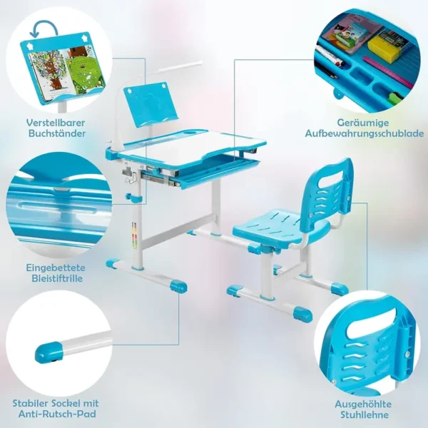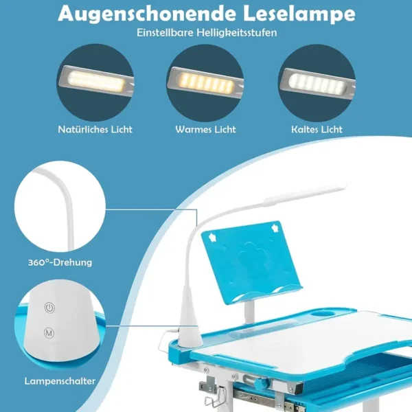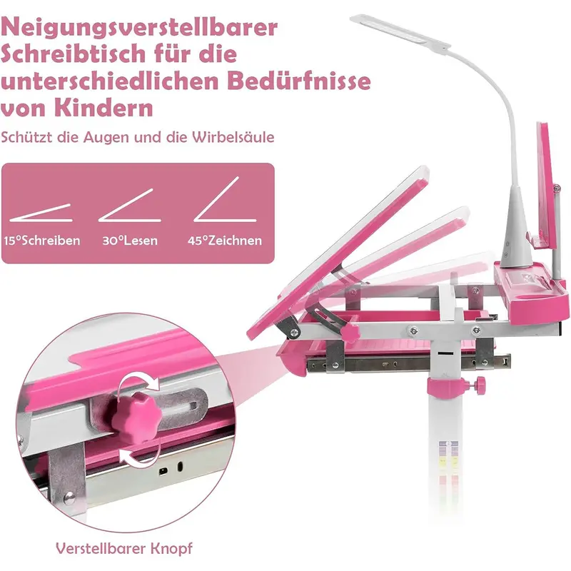 - Neigbare Tischplatte: Die Neigung der Tischplatte dieses Kinderschreibtisches ist von 0 bis 45° einstellbar. Kinder konnen beim Lesen von Büchern den geeigneten Lesewinkel einstellen.