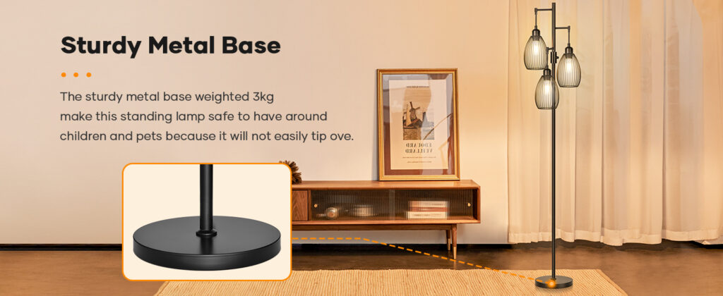 • Sturdy Metal Material: This floor lamp is made of high-quality iron metal material, the base and pole are heavy and stable, ensuring stability even on carpets. The thick metal tube surface is evenly painted to resist corrosion and provide a matte feel, making the entire lamp appear more high-end and durable. Giving you a long-lasting and high-quality lighting experience.