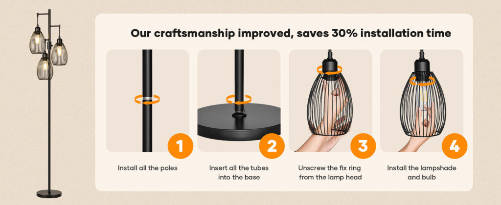 • Easy assembly: Our craftsmanship has improved, the lamp arm is attached to the lamp pole.This allowing you to complete assembly in just three minutes. This saves 30% installation time compared to other models. Enjoy the convenience of quick setup and start experiencing superior quality.