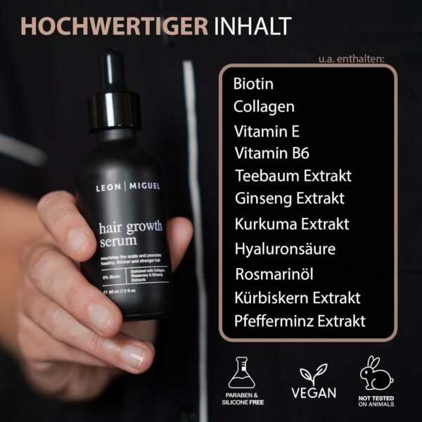 • Effektive Formel gegen Haarausfall: Unser Hair Growth Serum enthält 5% Biotin, kombiniert mit Rosmarin- und Ginseng-Extrakt. Diese kraftvolle Mischung bekämpft hormonell und altersbedingten Haarausfall und fördert gleichzeitig Dein Haarwachstum.