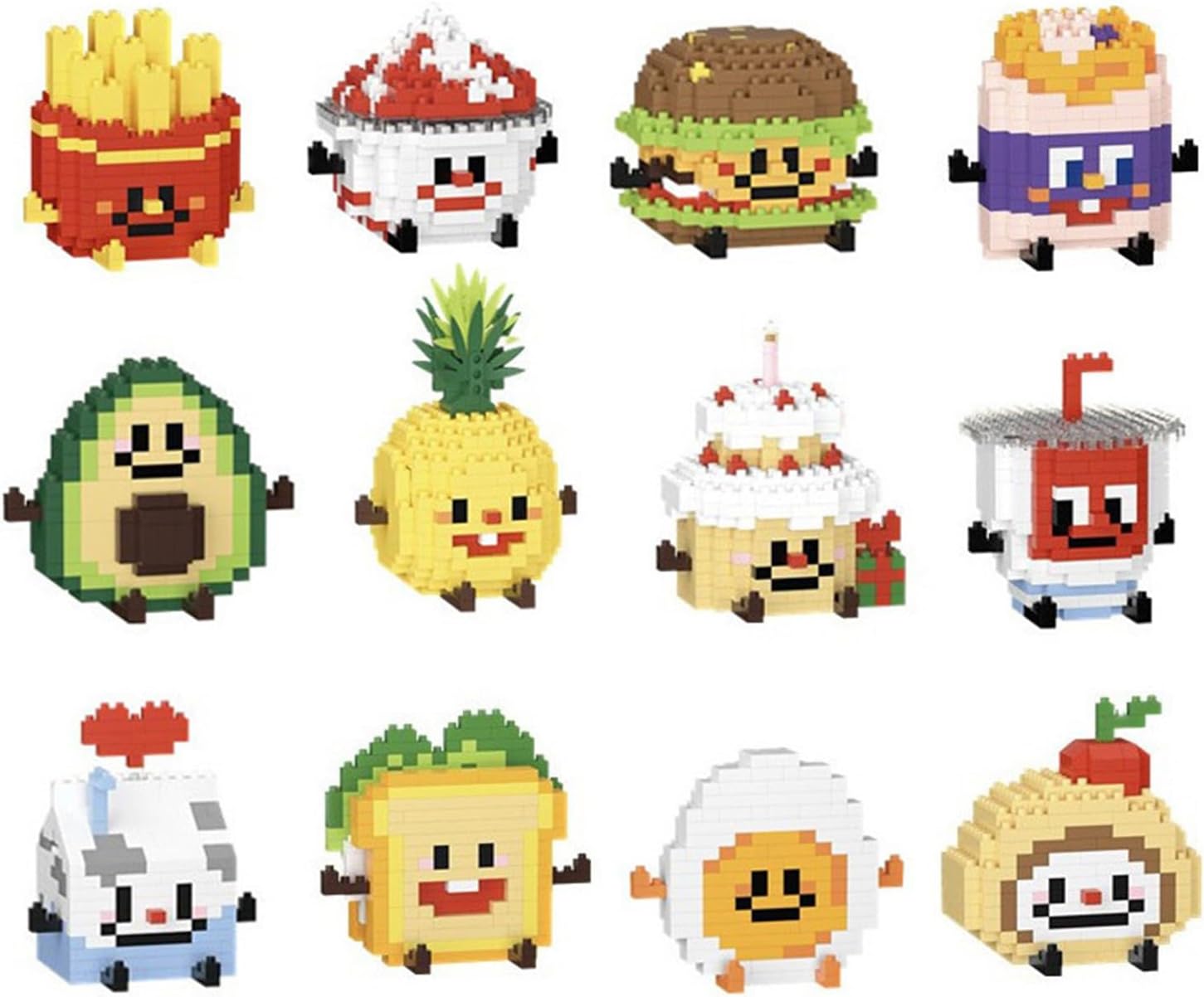 - These mini building blocks have 12 different cute designs such as eggs, chips, cakes, milk, etc., so that children can recognize different foods, which is very interesting.
