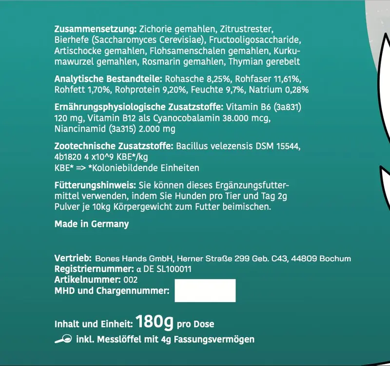 - Das Pulver eignet sich für die tagliche Fütterung und tragt dazu bei, die Darmflora nachhaltig zu stabilisieren und die Verdauung zU optimieren.