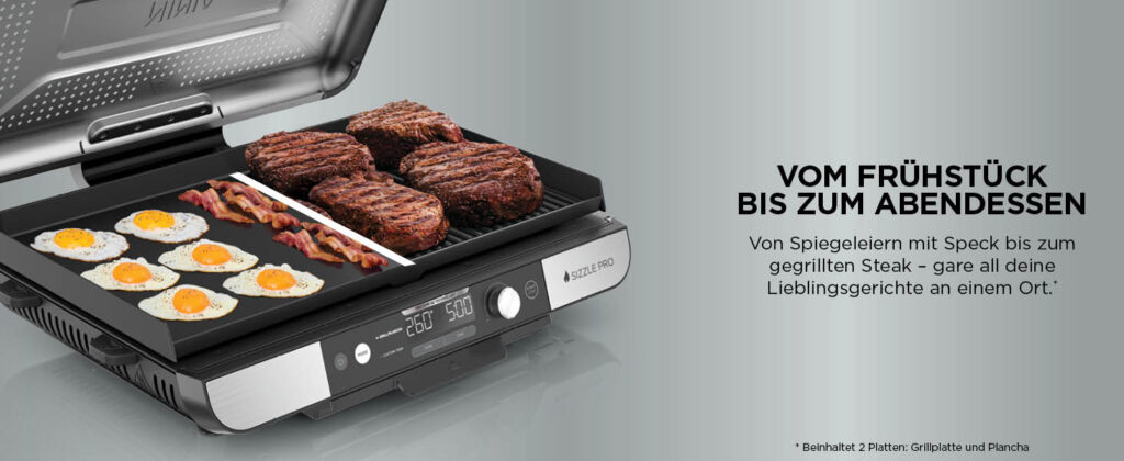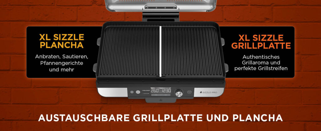 - Authentic charcoal aroma for the kitchen: with the easy-care, non-stick grill plate and plancha for searing and frying – fajitas, smash burgers and more.