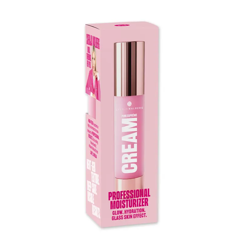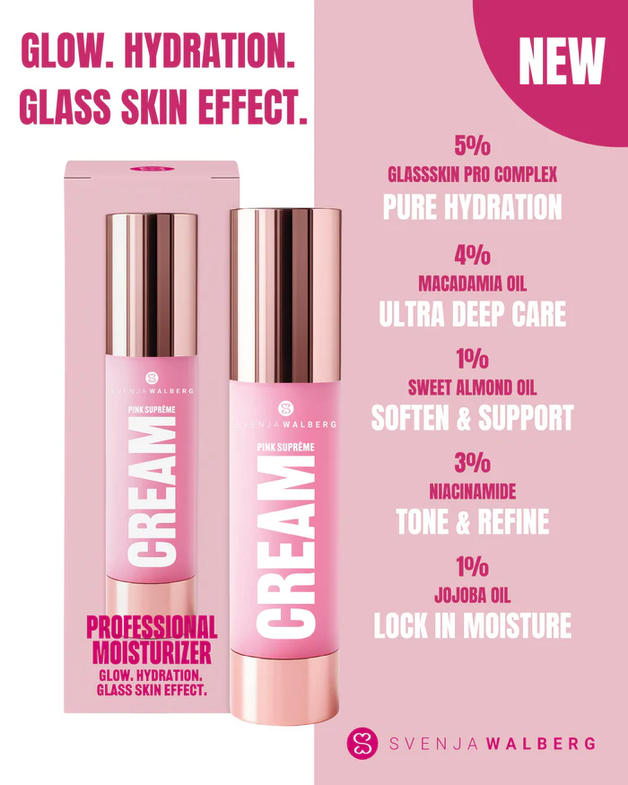 Die Svenja Walberg Creme kombiniert eine besonders reichhaltige Feuchtigkeitsformel mit dem Komfort einer integrierten Primerfunktion. Enthaltene Öle und ein 10-facher Feuchtigkeitskomplex können die Haut intensiv mit Feuchtigkeit versorgen und für ein geschmeidiges Hautgefühl sorgen. Hochkonzentriertes Niacin trägt dazu bei, den Teint zu verfeinern, während Vitamin B12 der Creme eine sanfte pinke Tönung verleiht. Die silikon- und mikroplastikfreie Textur bietet eine angenehme Softtouch-Haptik und eignet sich ideal als Grundlage für Make-up.