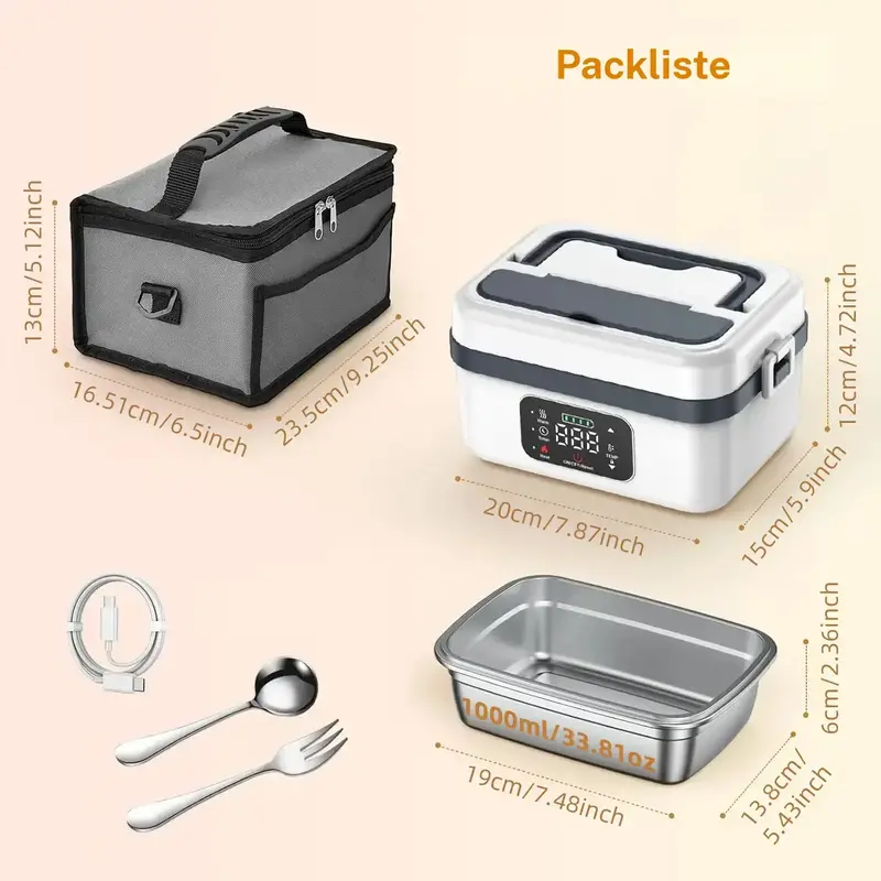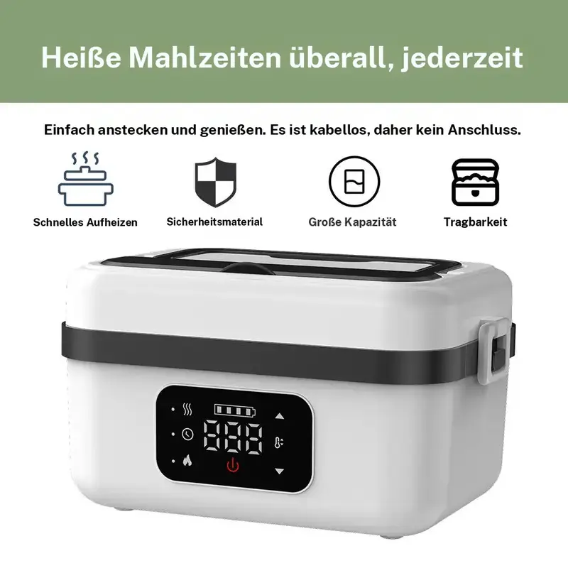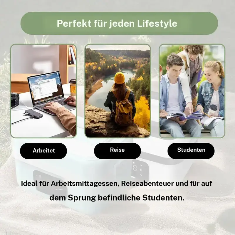 [Tragbares Design]: Diese Lunchbox ist für ein einfaches Transportieren konzipiert, sodass Sie überall von warmen Mahlzeiten genießen können. [USB-Aufladbar]: Verfügt über eine USB-Aufladung, ermöglicht es Ihnen, Ihre Mahlzeiten ohne Stromquelle zu erhitzen. [Vielseitige Nutzung] : Perfekt geeignet für verschiedene Anlässe wie Zuhause, Büro, Schule oder Outdoor-Picknicks, um all deine Bedürfnisse zu erfüllen.