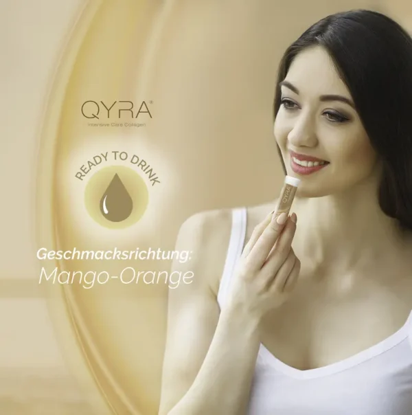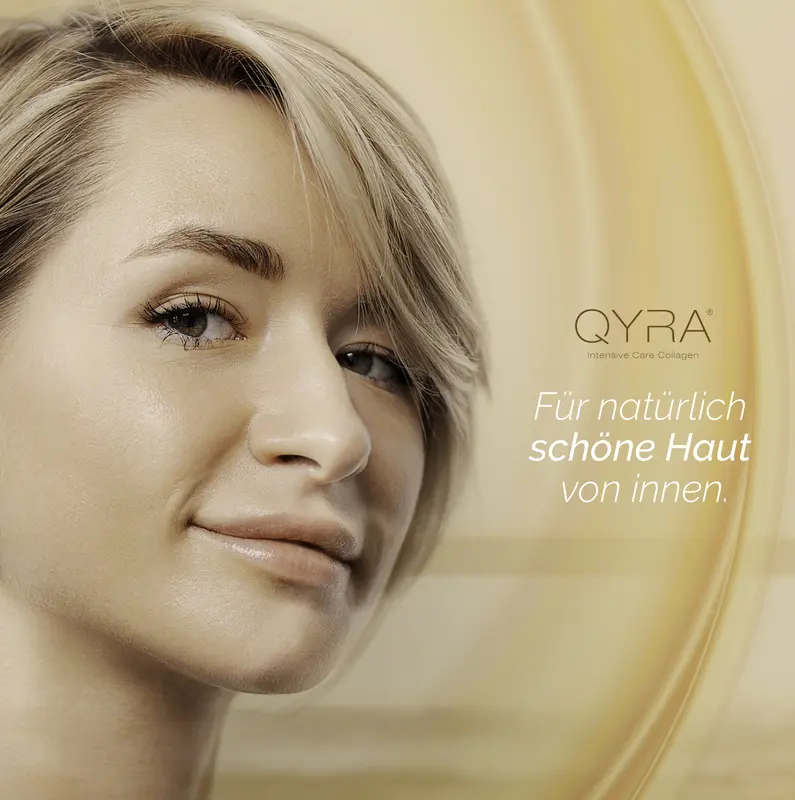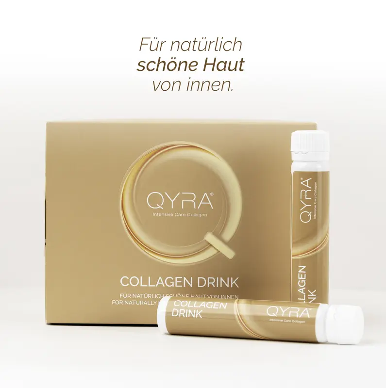 QYRA Kollagen Drink to go- dein taglicher Beauty Boost mit 2,5g VERISOL Schone Haut beginnt von innen: Der QYRA Kollagen Drink enthalt 2.50O mg VERISOL Kollagenhydrolysat pro Portion- ein trinkfertiger Beauty Collagen Drink mit klinisch belegter Wirkung. Die bioaktiven Peptide stimulieren gezielt die korpereigene Kollagenproduktion und unterstützen ein glattes, straffes Hautbild. Als Kollagen Drink to go passt QYRA perfekt in deinen Alltag – ohne Mischen, jederzeit einsatzbereit.