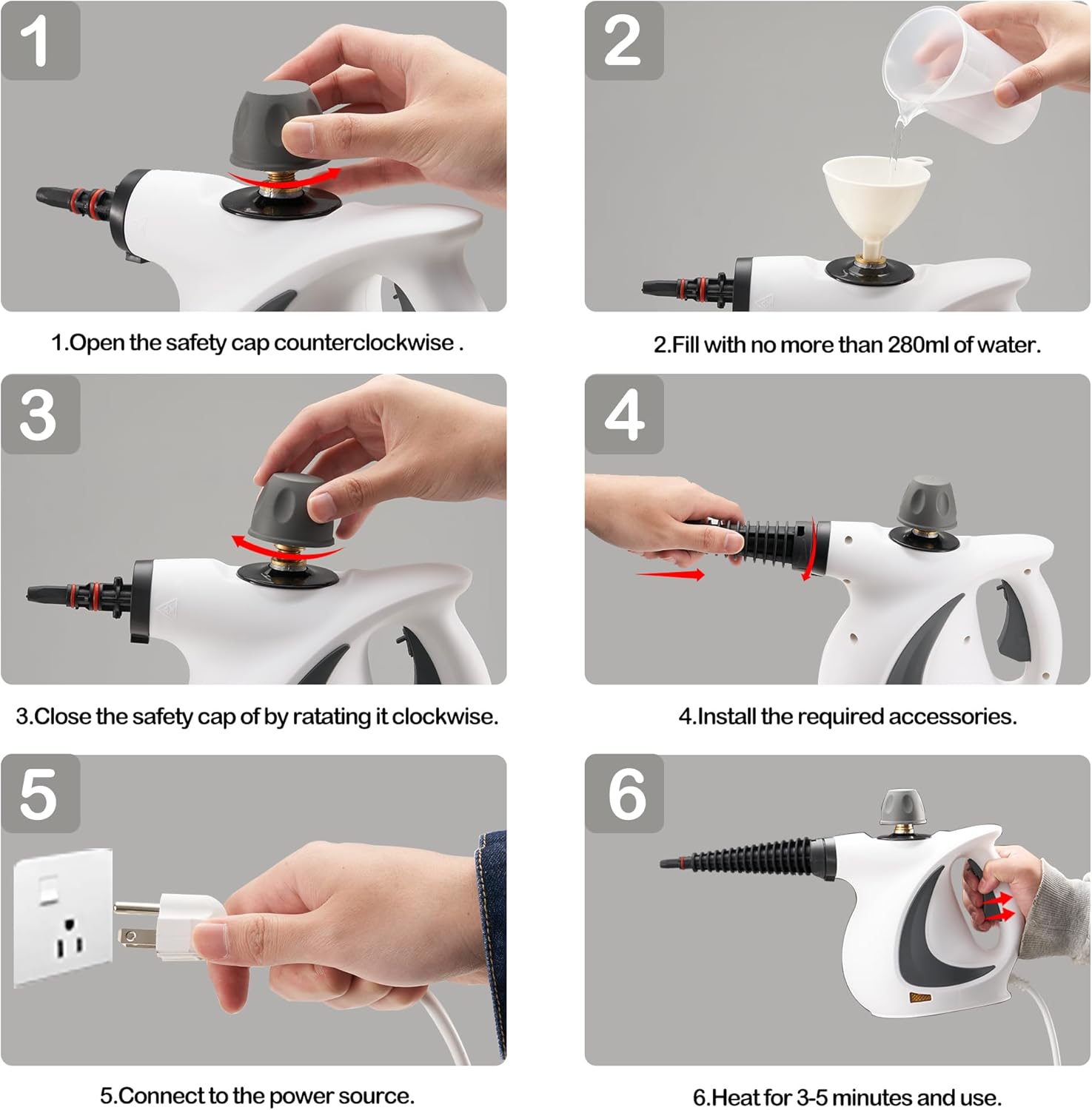 • Multifunktionaler Dampfreiniger – Unser Handdampfreiniger wird zur Reinigung von Schmutz und Flecken auf Boden, Auto, Teppich, Fenstern und Kleidung verwendet. Mit exklusiver Petented Technologie, Hochdruckdampf und Hochtemperatur-250°F (115℃), Dampfschuss kann auch zum Entfernen von Staub verwendet werden. Es ist ein umweltfreundliches und hygienisches Produkt.