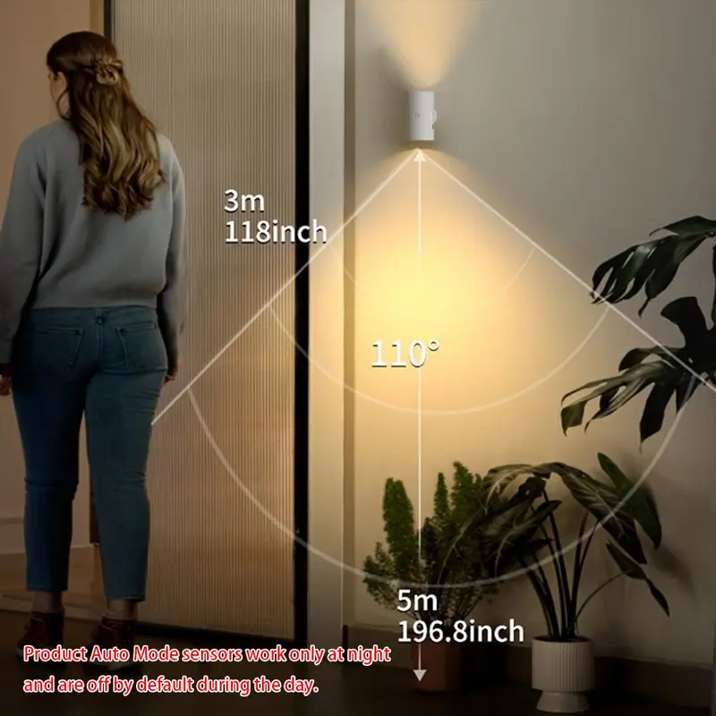 - Bewegungssensor — Verfügt über eine intelligente Bewegungserkennungstechnologie, die das Licht automatisch aktiviert, wenn eine Bewegung in der Dunkelheit erkannt wird, und so für Komfort und Energieeinsparungen sorgt