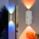 - Intelligente Bewegungssensor-Wandleuchte mit Farbverlauf — Kompaktes weißes Gehäuse mit eingebautem Bewegungssensor und einstellbarem Farbverlauf für eine lebendige Atmosphäre.